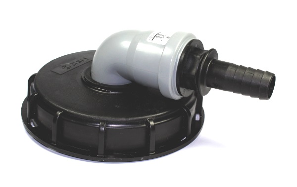 IBC-Schraubdeckel NW150 mit 90° HT-50 Bogen u. 1" Schlauchtülle